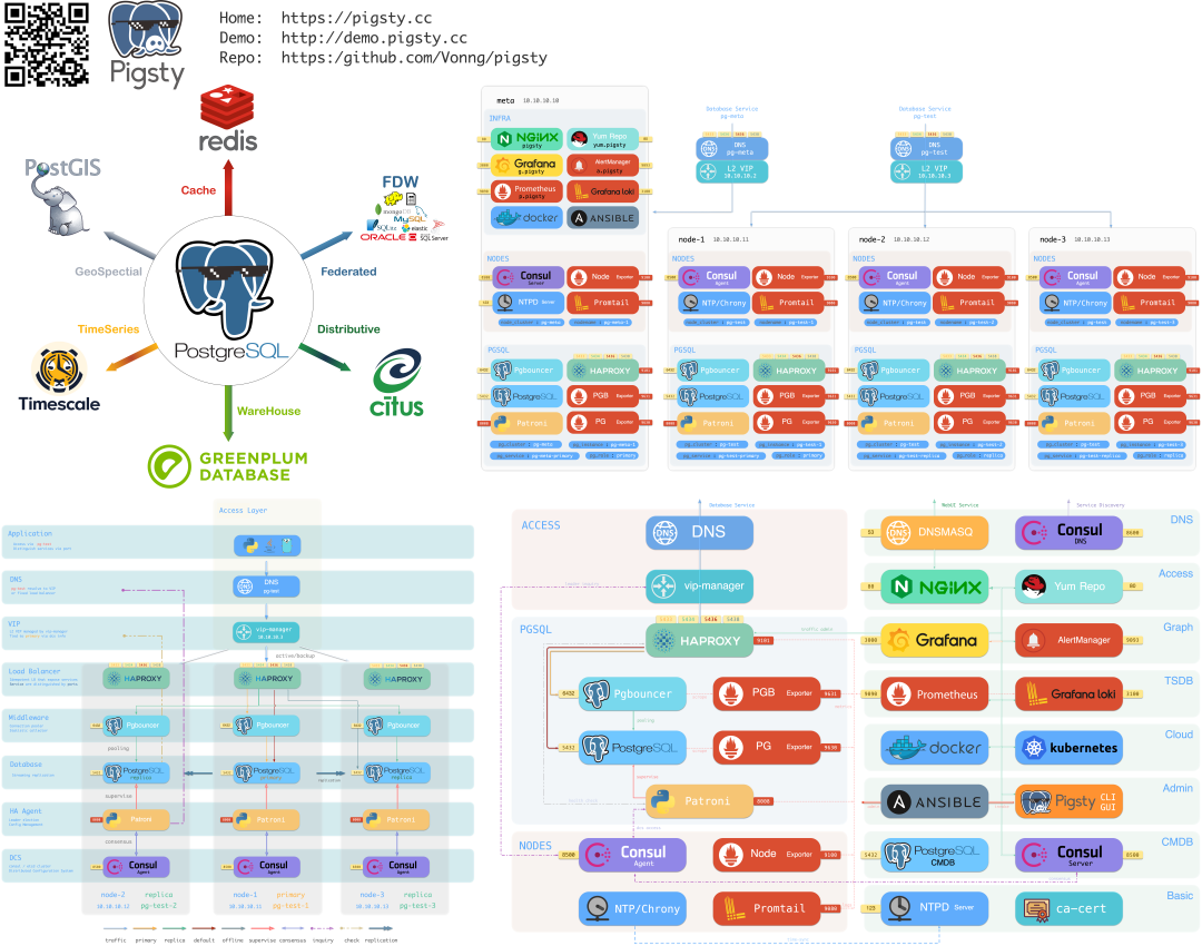 Pigsty v0.4进行了大量软件适配工作,包括: