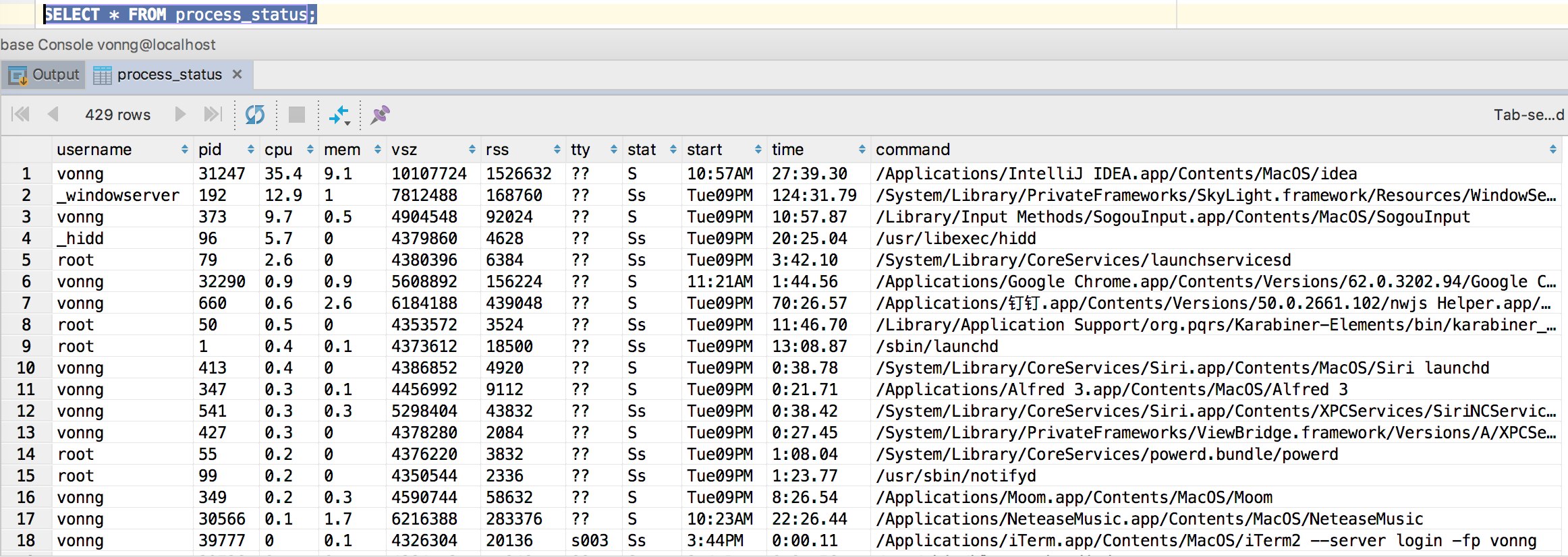 举个栗子,如果我想从数据库中读取操作系统中正在运行的进程信息,该怎么做呢?