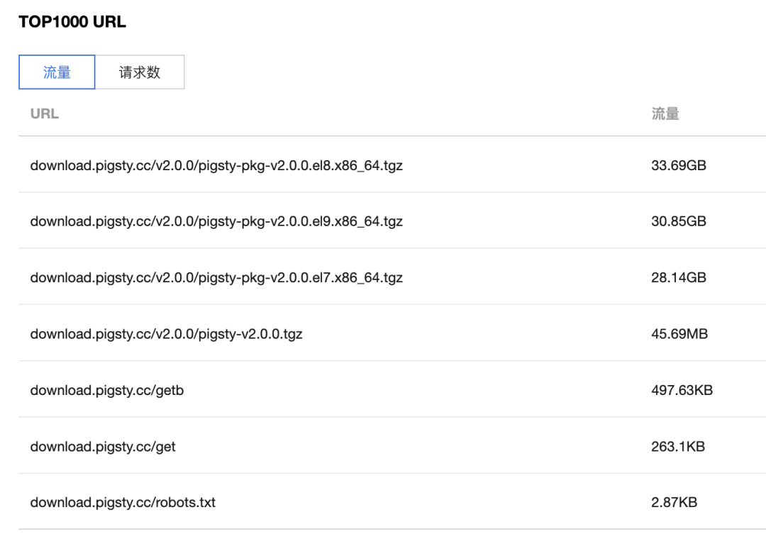 点进去一看,CDN 收了几百块钱,我还想,难道是哪里渠道带火了下载?于是进入 数据统计分析界面一看,这段时间里,总共软件包也就是 100GB 不到的下载流量,撑死了几十块钱,怎么会我收几百块呢?