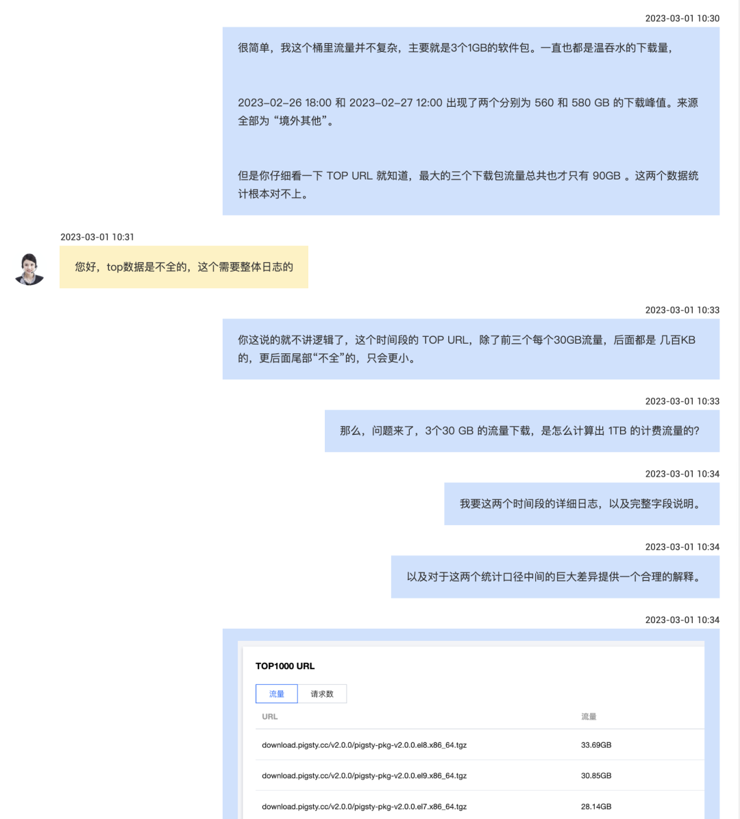 所以,一个简简单单的 1MB / 1GB 的软件包要走 CDN 分发,本来可能一天也没几块钱的东西,点一下按钮,大几百块就没了。在监控图表上,把内部的流量藏的好好的;在计费逻辑上,把本应免费的内部流量硬塞到用户头上。