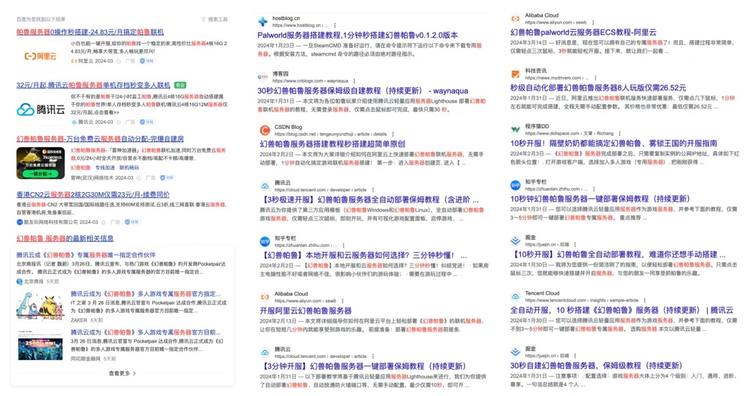 把云服务器卖给个人用户这种滑稽想法,可能源于最近爆火的《幻兽帕鲁》自建服务器需求。我的朋友 SealOS 的创始人方海涛写了一篇《自建幻兽帕鲁私服的教程》,尝到了泼天富贵 SaaS 的美味。然后各家公有云厂商也快速跟进卷了起来 —— 一路从3分钟开服到30秒到3秒种开服。正如 《国内云:有大厂,没大哥》一文形容地那样,丝毫不顾颜面,撸起袖子下场,干起了浩方对战平台应该干的事情。