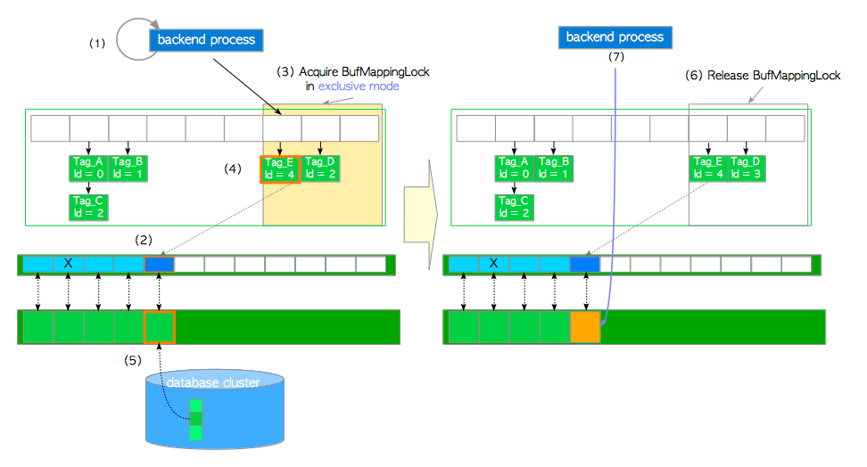 buffer_id=5描述符上的共享content_lock和独占io_in_progress_lock(在步骤6中释放)。 -