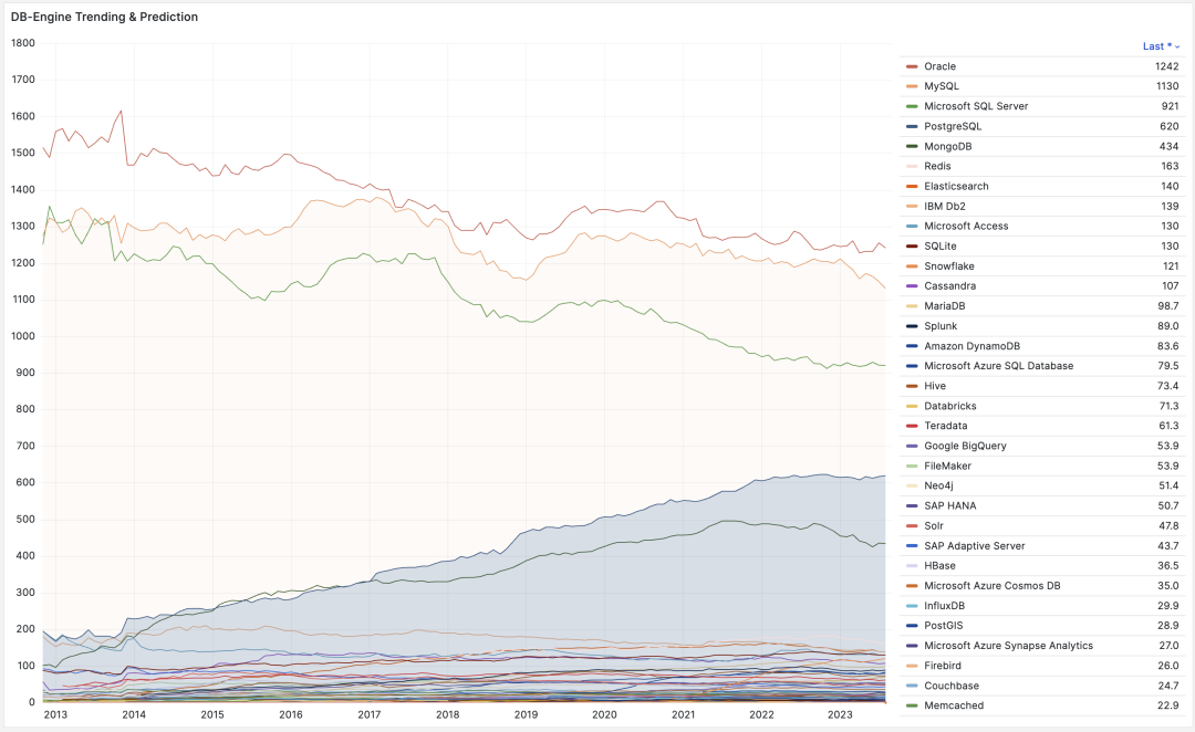 DB-Engine 热度走势,来自搜索引擎与网站的综合指数
