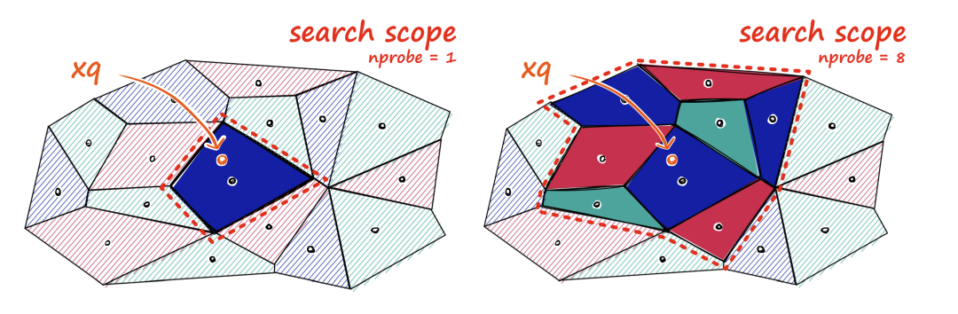IVF FLAT 索引算法的的召回率取决于检查的中心数量