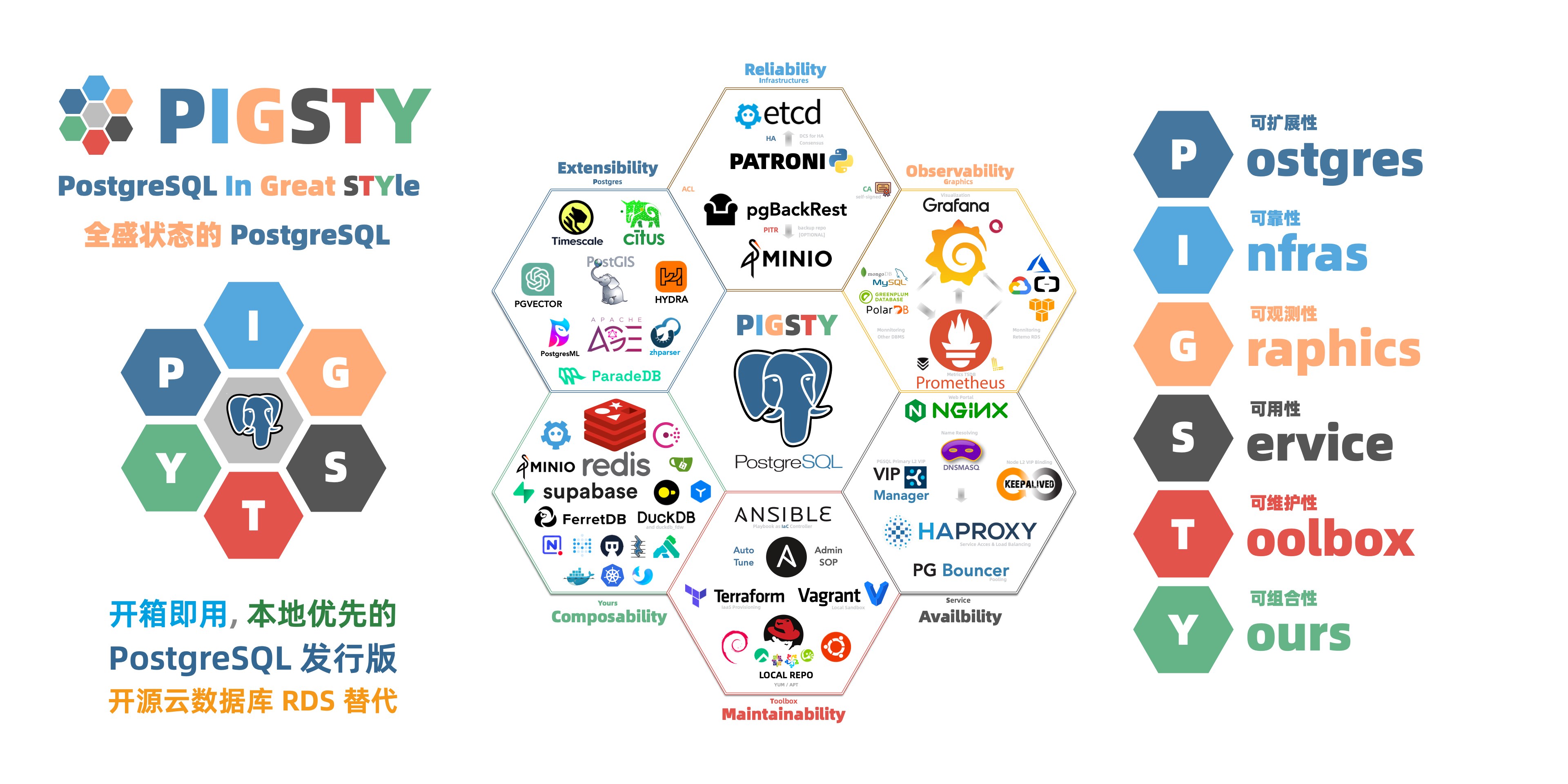 Pigsty是基于 AGPLv3 开源的自由软件,由热爱 PostgreSQL 的社区成员用热情浇灌